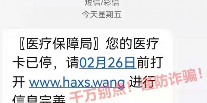 近期有不法分子利用“醫(yī)保停用”等相關(guān)題材,向參保人員發(fā)送詐騙短信,點(diǎn)開鏈接后跳轉(zhuǎn)的頁(yè)面與國(guó)家醫(yī)療保障局官方網(wǎng)頁(yè)非常相似,但內(nèi)含木馬病毒鏈接,如果按頁(yè)面上的提示填寫身份證號(hào)、銀行卡號(hào)...